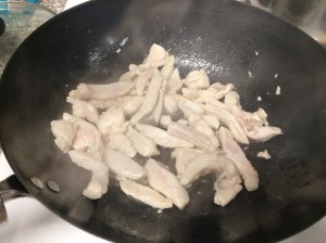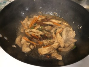 Remove the chicken from the wok and place into a small bowl and set aside. Continue to reduce the sauce, letting it thicken naturally until it coats the back of a spoon. Return the chicken to the sauce and warm through.