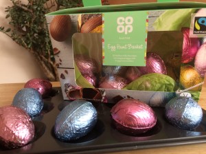 12 x 17g hollow milk chocolate Easter eggs, plus one half of a large hollow Easter egg or 1 large hollow Easter egg