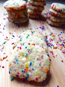 I’ve said before that I find making cookies where you roll out and cut out cookie shapes not enjoyable. The cookies would usually end up tough and rather bland however after a lot of experimenting and sugar cookie baking, I’ve managed to get a recipe which produces perfect sugar cookies. These are my Foolproof Funfetti Icebox Sugar Cookies!