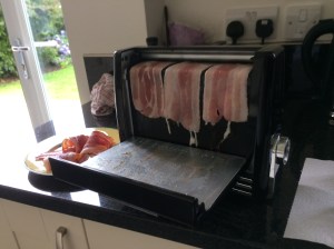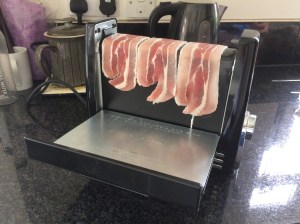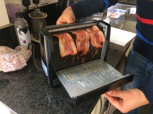 Moreover the Bacon Express lends itself well to multitasking in the kitchen. Really the bacon does not require any of your attention thanks to the beeping after it has preheated and after the bacon has cooked meaning that except from opening it just to have a check on its progress, you can very easily prepare your bread for your bacon butty or scramble your eggs while the bacon sizzles away happily in the Bacon Express which is a huge positive.