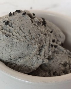 Inspired by Nadiya Hussain’s rhubarb ripple ice cream that she made last week on her British Food Adventure, I am fuelling my obsession with black sesame and I’m sharing my recipe for my No Churn Black Sesame Ice Cream.