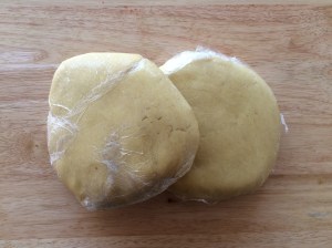 For the cookie dough, cream together the margarine with the sugar and lemon zest until it is light and fluffy. Beat in the vanilla extract and egg until combined. Sift in the flour and baking powder and add in the ground almonds and use a spatula to fold in the dry ingredients until a soft but not sticky dough forms. Divide the dough in half, shape each half into a disc and wrap in clingfilm and chill for 90 minutes or even overnight.