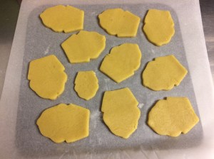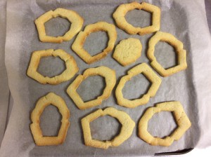 Use your desired cookie cutter to cut out as many shapes from the rolled out dough as possible and place on the baking tray. Then cut out the shape of your hole on half of the cookies while on the tray (you won’t distort the shape when transporting them!). Reroll any of the offcuts no more than twice.