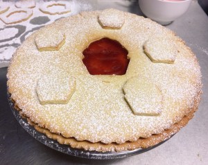 Linzertorte pastry is flavoured with lemon zest, cinnamon and ground hazelnuts but this recipe uses ground almonds which are much easier to find and compliment the lemon well. The important step in this recipe is to chill the biscuit dough before rolling out and after cutting out – chilling is required for the dough before rolling as it is impossible to roll this dough out without chilling so this dough can be made in advance; chilling is required after cutting out to help maintain the shape of the linzer cookies so they don’t spread much which could ruin the appearance since the 2 cookie halves must be identical in shape!