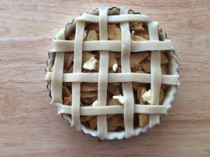 This lattice is very basic and by no means perfect either. I see on Bake Off that the bakers make the perfect lattice on parchment and then flip it onto the top of the pie/tart and I know that I could never do that because it wouldn’t make it in one piece so I do this lattice on top of the filling, alternating over and under the strips of pastry – the filling isn’t sticky so this shouldn’t be difficult.