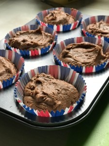 When the large sponges have 10 minutes left to bake, begin to prepare the cupcake mixture by following the same method but dividing the cake batter between 6 large cupcake cases using an ice cream scoop to easily divide up the batter. Bake these for around 20 – 25 minutes, again until an inserted skewer comes out clean. Once cool, trim the tops if necessary.