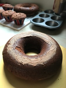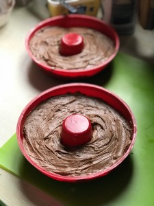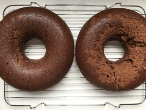 Divide the mixture between the two doughnut moulds and use the back of a spoon to level out the surface. Bake the sponges for around 30 – 35 minutes or until well risen and an inserted skewer into the thickest part of the cake comes out clean. Leave the cakes to cool in the mould for 10 minutes before peeling away the mould and leaving to cool fully on a cooling rack.