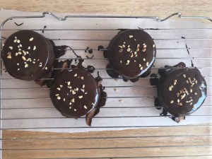 I chose to invent my own recipe to make the Wagon Wheels, which is essentially a sandwich biscuit consisting of 2 shortbread biscuit layers sandwiched together with marshmallow and jam before being all covered in chocolate. The recipe used on the show contains gelatine for the marshmallow but my Wagon Wheel recipe doesn’t contain gelatine making it suitable for vegetarians and those who don’t consume gelatine.
