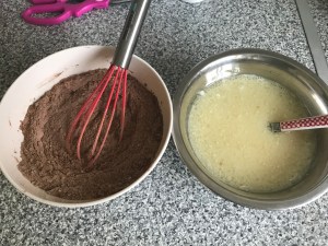 I did some investigating to find a good chocolate cake recipe which is vegan. Many recipes called for a dairy-free milk to be mixed with cider vinegar as well as being oil-based, although vegan margarine popped up often. I came across this recipe from The Domestic Gothess for a Vegan Chocolate Sheet Cake and I gave the recipe a try. I really liked the rich chocolate flavour which came from the natural cacao powder from Food Thoughts and the cake’s texture was really easy to eat, fluffy while slightly fudgy too. I knew this recipe, with a few tweaks on my side, would be perfect for my layer cake.