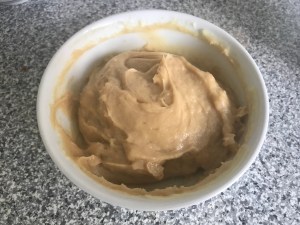 Pour the hot pastry cream over the peanut butter and mix until an even colour. It will be significantly thicker and will thicken further on cooling. Place clingfilm onto the surface of the pastry cream and refrigerate until needed.