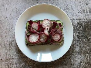 To me, the smørrebrød should combine both style and substance. They must taste delicious while looking visually attractive. It’s really important to think about how the sandwich will look at the end in terms of the layering process, the colours and the finishing touches to make the smørrebrød look amazing – and then there’s the sandwich toppings to worry about too! I took inspiration from the Scandinavian tradition of pickling and fermenting foods for my sandwich toppings. For both of the smørrebrød, I make a quick pickle of red onion and radish which can be made in just 20 minutes!