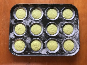 Preheat the oven to 180°C. Transfer the cake batter into a piping bag and cut off a medium hole at the end. Divide the batter evenly between the 24 holes of the bun tins and then give the tray a light tap on the surface.