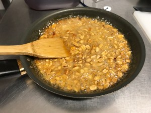 At this point leave the mixture to continue to cook, using a food thermometer to check the temperature. Once the mixture has reached 147°C (it will have turned a golden amber colour), remove from the heat.