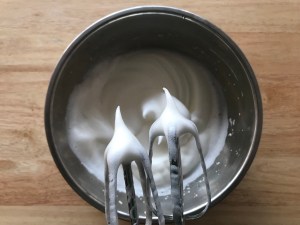 Now I’m not too sure whether this is an authentic Castella cake recipe however the cake is incredibly delicate, light and fluffy. I don’t have the confidence to squash the cake like in the video I took inspiration from or jiggle my Castella cake too much but the light and airy texture is highly satisfying in itself! The cake is made using a meringue base which lends that really light texture to the final cake. It follows a basic whisked sponge method which I detail more in my Hazelnut and Coffee Traybake, except the egg whites are whisked, adding the sugar gradually and the egg yolks are whisked in afterwards.