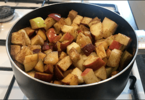 I always like to cook my crumble filling on the hob first so that the filling becomes sweet and syrupy. This step can be done in advance. If you don’t have or can’t find plums, fresh berries make a good additional fruit filling also. These should be added towards the end of the cooking process otherwise they will break down too much.