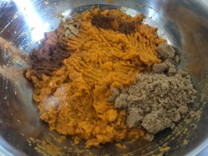 Meanwhile prepare the sweet potato filling. Steam the sweet potato cubes for around 15 to 20 minutes or until a knife easily inserts into the sweet potato. Leave the sweet potato to cool slightly before weighing out 300g into a large mixing bowl and using a masher or a fork to mash the sweet potatoes. You can use a processor for this step but I like to keep some texture in the filling. Whisk in the sugar, spices and condensed milk until the filling is evenly mixed. Set aside uncovered to cool down until required.