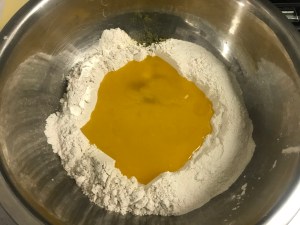 Preheat the oven to 180˚C. Line a baking sheet with a sheet of baking parchment.
