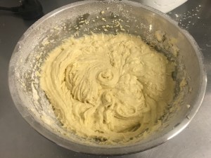 Into a large mixing bowl, add all of the ingredients for the sponge, except for the milk. Using an electric hand mixer, beat together all the ingredients until everything just comes together (see photo below) – depending on the speed of your beaters and the size of your bowl, this could take anywhere from 30 seconds to a minute. At this point, scrape down the beaters with a spatula and scrape down the sides of the bowl and finish mixing the cake batter by folding the mixture to incorporate everything until you have a smooth and even cake batter. If the cake batter feels a bit thick, you can mix in the milk to loosen the cake batter.