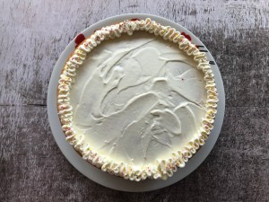 If you don’t have any piping bags or tips, you can still decorate the cake in a similar way. You can use a spatula or a palette knife to create a border to hold in the jam in the middle of the cake and on top, a border to contain the passionfruit. It might take a bit of extra time but you can also get creative with the decorating too!