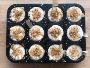 I loved the idea of having this as the cheesecake base since my crumble toppings always contains oats and nuts – check out my Apple and Plum Crumble recipe! The biscuit base uses light muscovado sugar which adds great caramel notes and contains cinnamon, mixed spice and ground ginger, all spices that work fantastically with apples. The warming spices give a great autumnal feel to these cheesecakes.