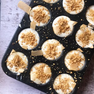 This recipe is enough to make 12 mini cheesecakes baked in a 12-hole muffin tin.