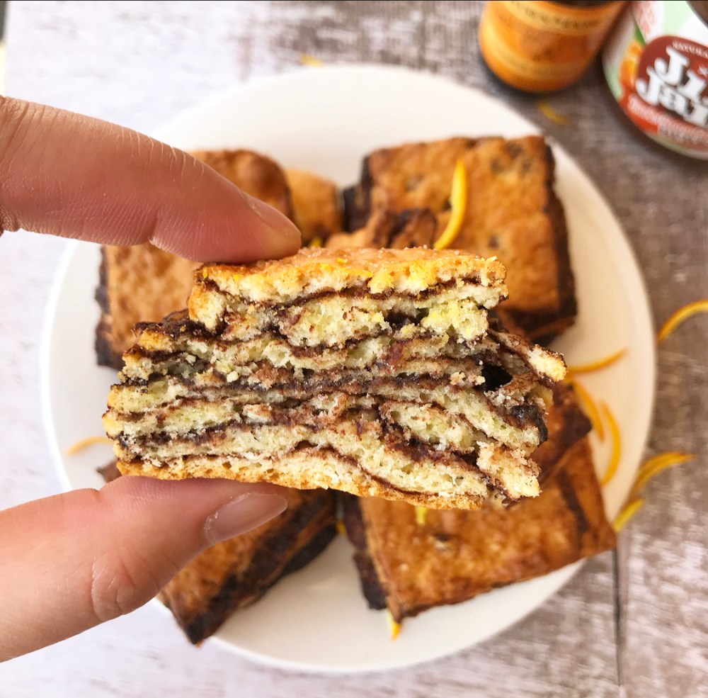 - About 100g vegan dark chocolate orange spread, warmed in the microwave to soften