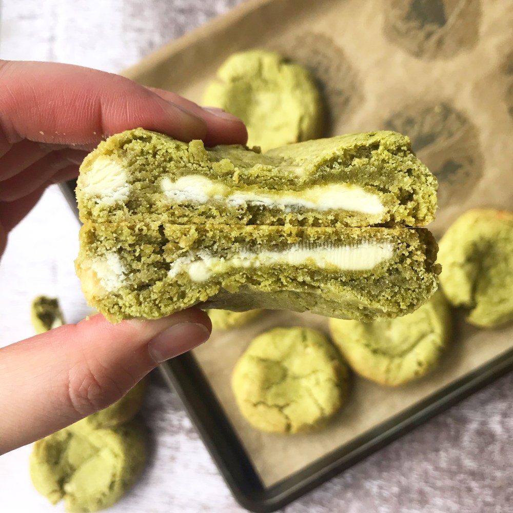 Matcha White Chocolate Stuffed Cookies